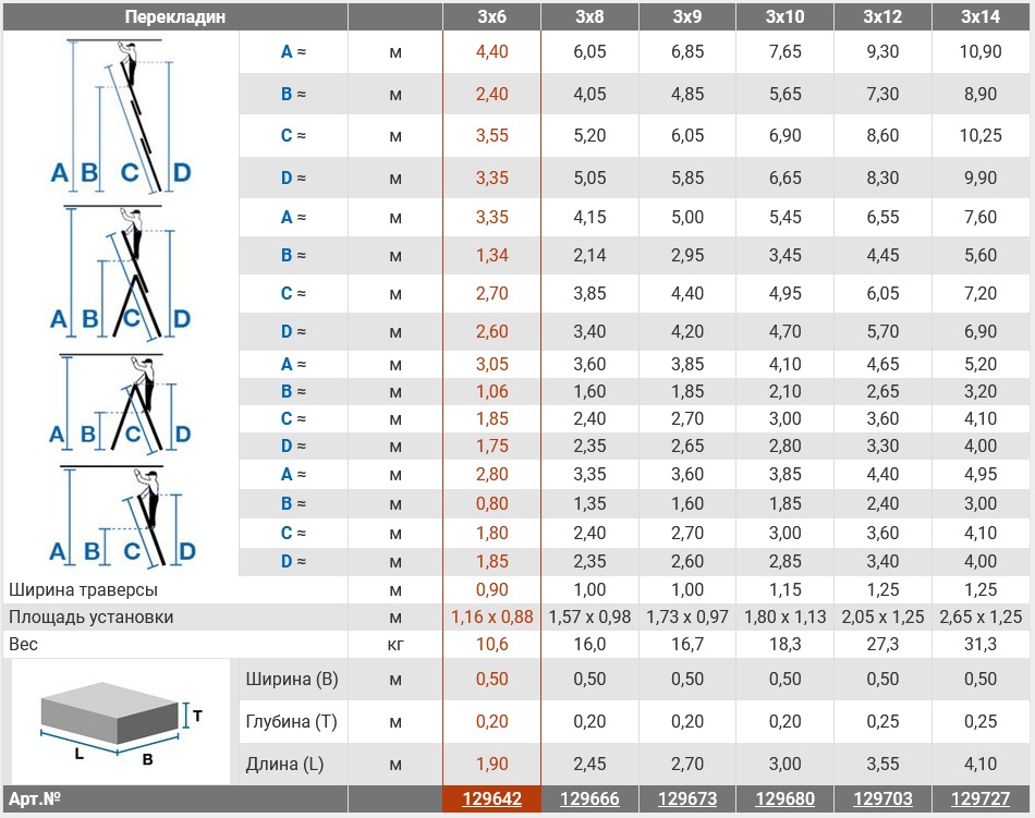 Ступеней 9 в секции, секций 3 , вес 16,7 кг, высота 2,70м/4,40м/6,05м, нагрузка 150 кг.