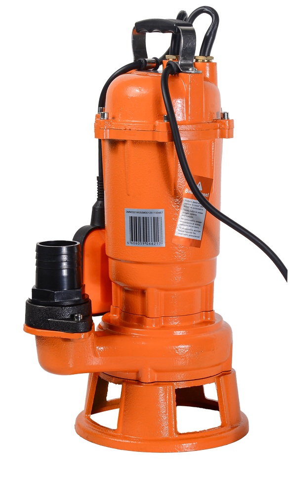 Рабочее колесо изготовлено из чугуна, устойчивого к истиранию и износу при работе с абразивными средами. Забор воды осуществляется снизу, что улучшает эффективность откачки. Устройство способно пропускать твёрдые частицы размером до 15 мм. Для защиты от засоров на всасывающем патрубке установлен режущий нож, измельчающий волокнистые отходы — это предотвращает закупорку и продлевает срок службы насоса.